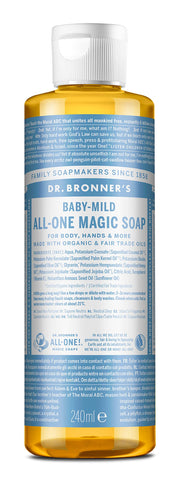 - MADE WITH ORGANIC OILS & CERTIFIED FAIR TRADE INGREDIENTS: Dr. Bronner's Pure-Castile Magic Soap are made with over 70% certified organic & fair trade ingredients—an ethical, sustainable choice and a gentle castile baby soap liquid for all!