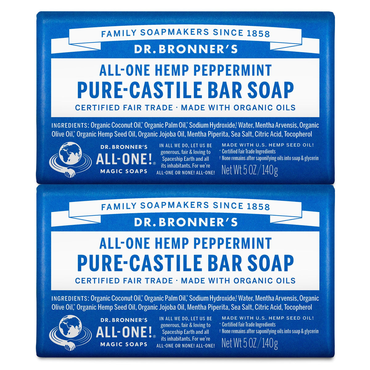 Dr. Bronner's Organic Pure Castile Bar Soap, Peppermint, 5 oz, 2 pk