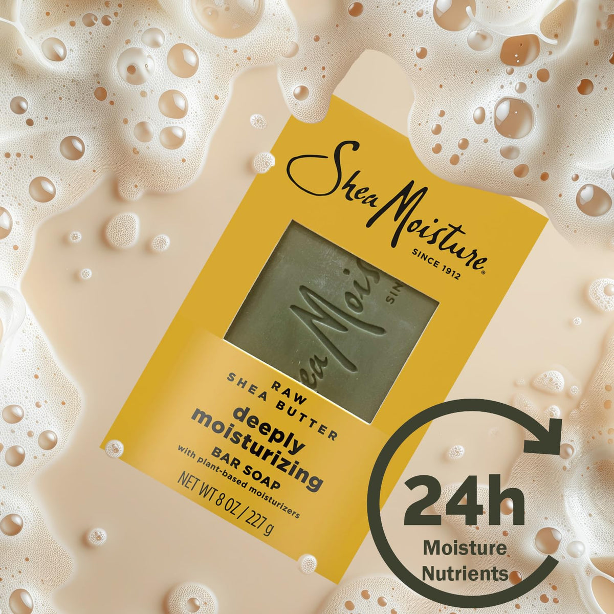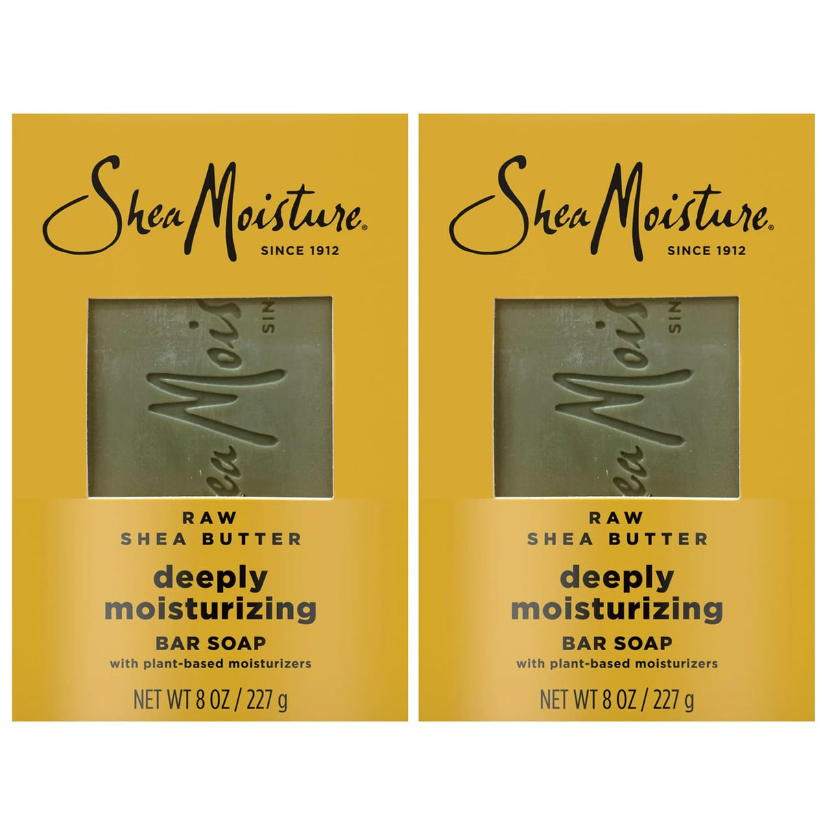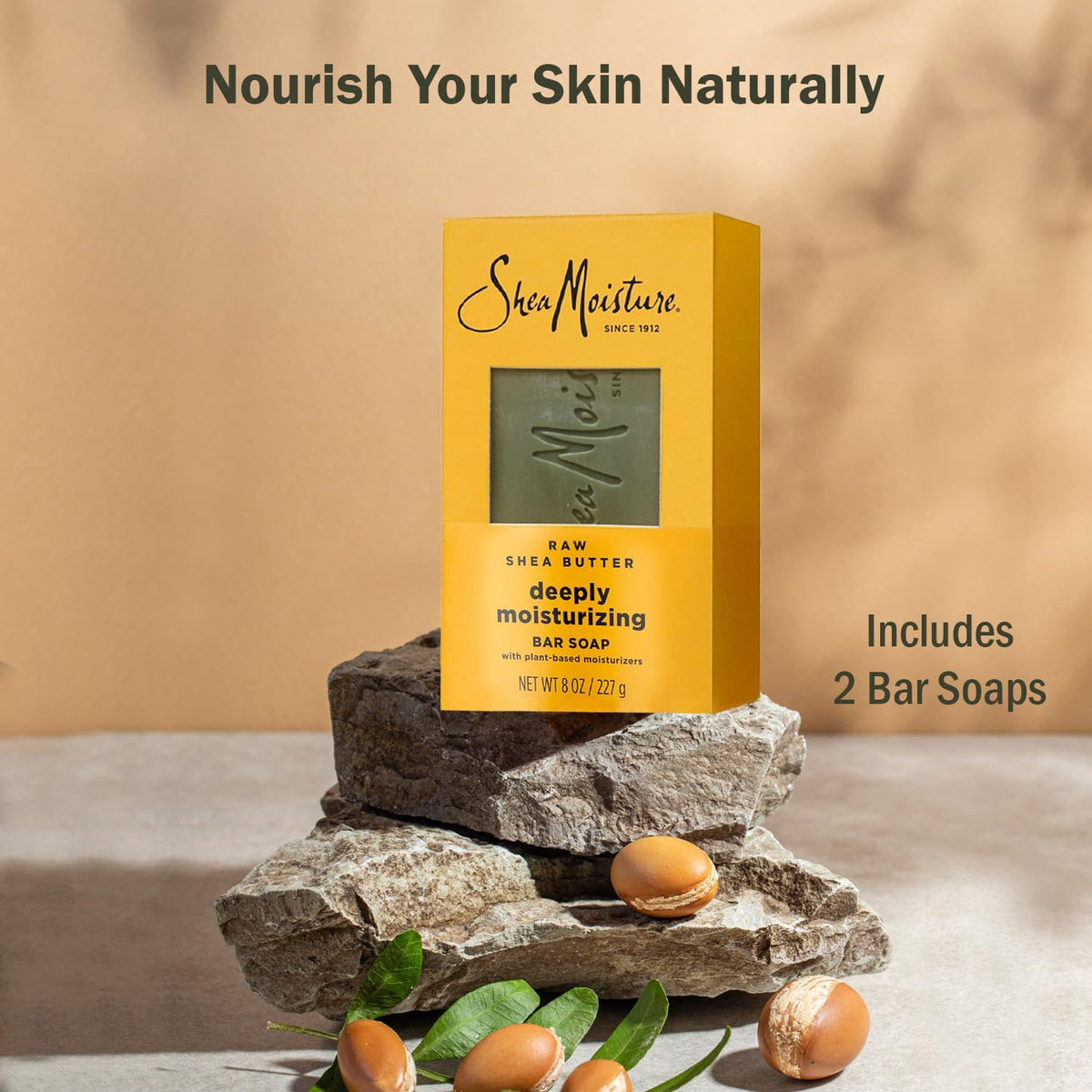 SheaMoisture Bar Soap Raw Shea Butter - Deeply Moisturizing Body Wash Bar Soap with Plant-Based Moisturizers - Cleans and Moisturize Dry Skin - 8 oz. Bar 2 Pack