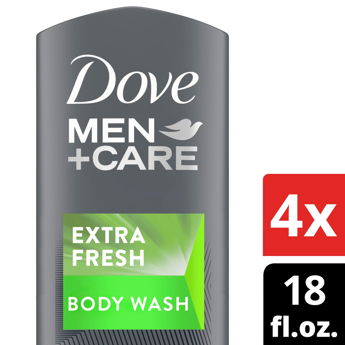 Refresh your skin with Dove Men+Care Body Wash Extra Fresh. This 4-count pack of body wash effectively washes away bacteria while nourishing your skin. Enjoy the invigorating extra fresh scent and the nourishing care for your skin.