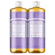 Discover the versatility of Dr. Bronner's Pure-Castile Liquid Soap Lavender. This 32 oz pack of 2 offers organic cleansing for face, body, hair, laundry, pets, and dishes, all in one bottle.