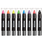 Moon Glow - Blacklight Neon Face Paint Stick / Body Crayon makeup for the Face & Body - Pastel set of 8 colours - Glows brightly under blacklights
