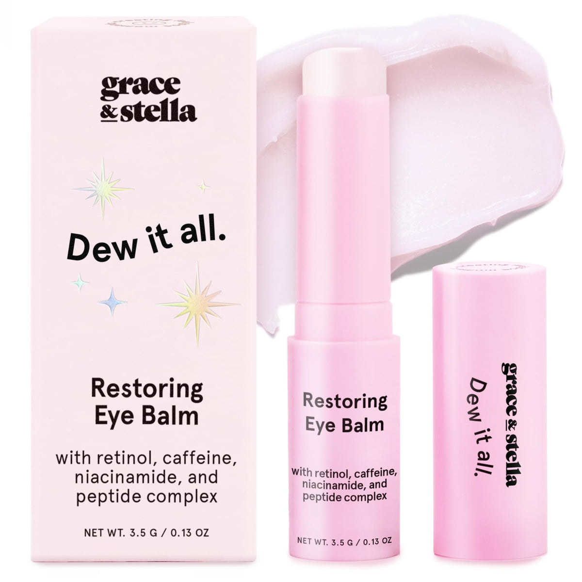 grace & stella Under Eye Brightener Balm Stick - Travel Size Toiletries - Retinol & Caffeine Eye Cream for Dark Circles, Puffiness, Wrinkles - Hydrate and Brighten - Vegan Skincare (0.13oz / 3.5g)