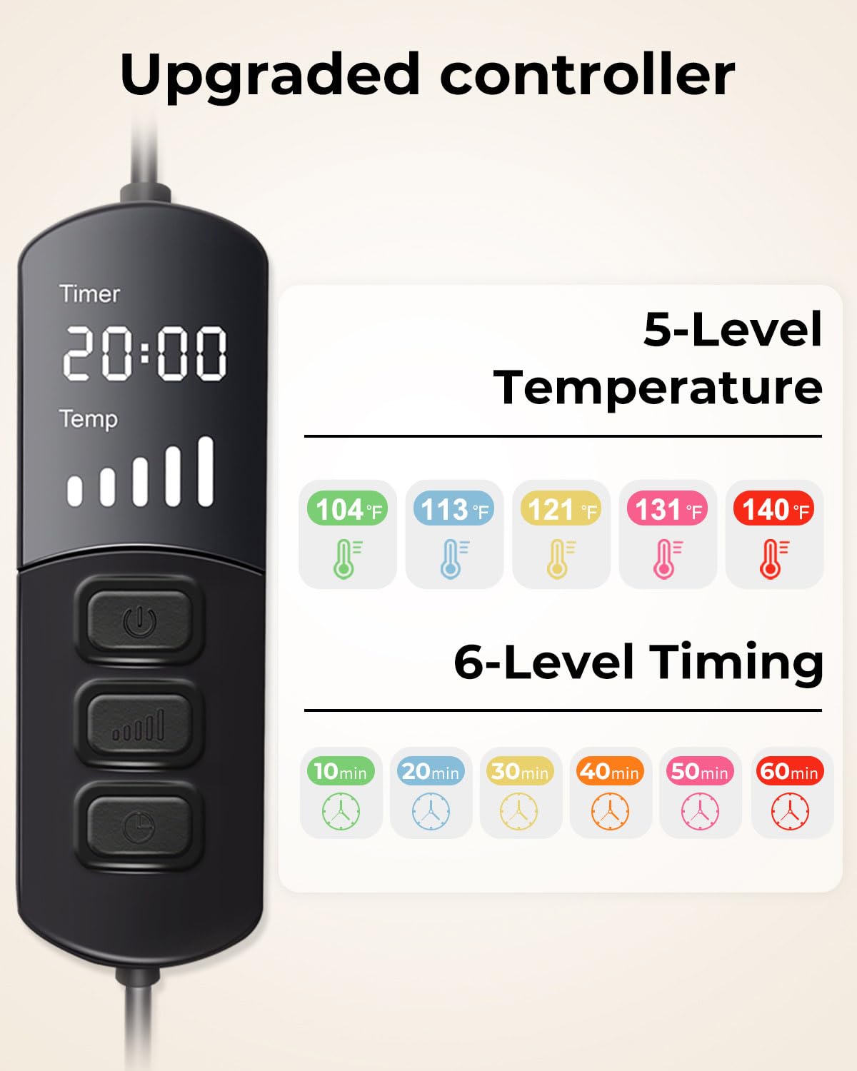 1. Plug in the heated eye mask. 2. Select a desired heat temperature level and timing duration. 3. Place the mask over the eyes. 4. Keep the mask powered on during use