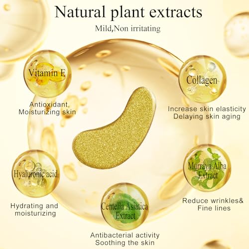 Aurchdly Under Eye Patches(24K Gold 30 Pairs), Gel Eye Mask for Reduce Dark Circles, Puffy Eyes,Undereye Bags, Wrinkles,-with Hyaluronic Acid & Collagen,Eye Treatment Skin Care for Men & Women Gift
