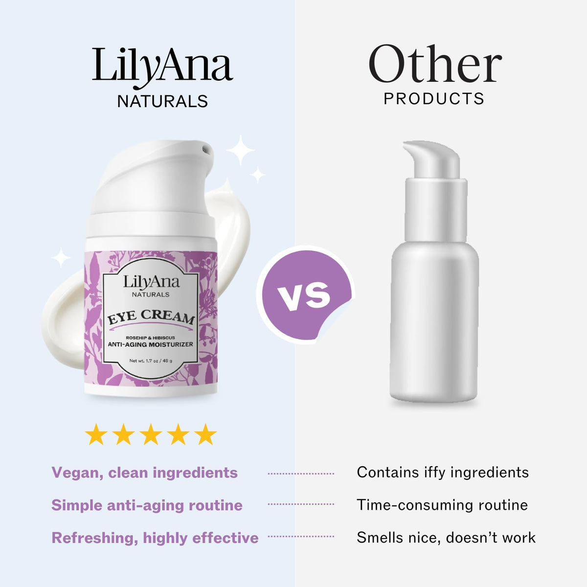 LilyAna Naturals Eye Cream for Dark Circles and Puffiness, Under Eye Cream for Wrinkles and Bags, Anti Aging Cream helps Improve Dryness; for Sensitive Skin (Bottle, 0.5 Ounce (Pack of 1))