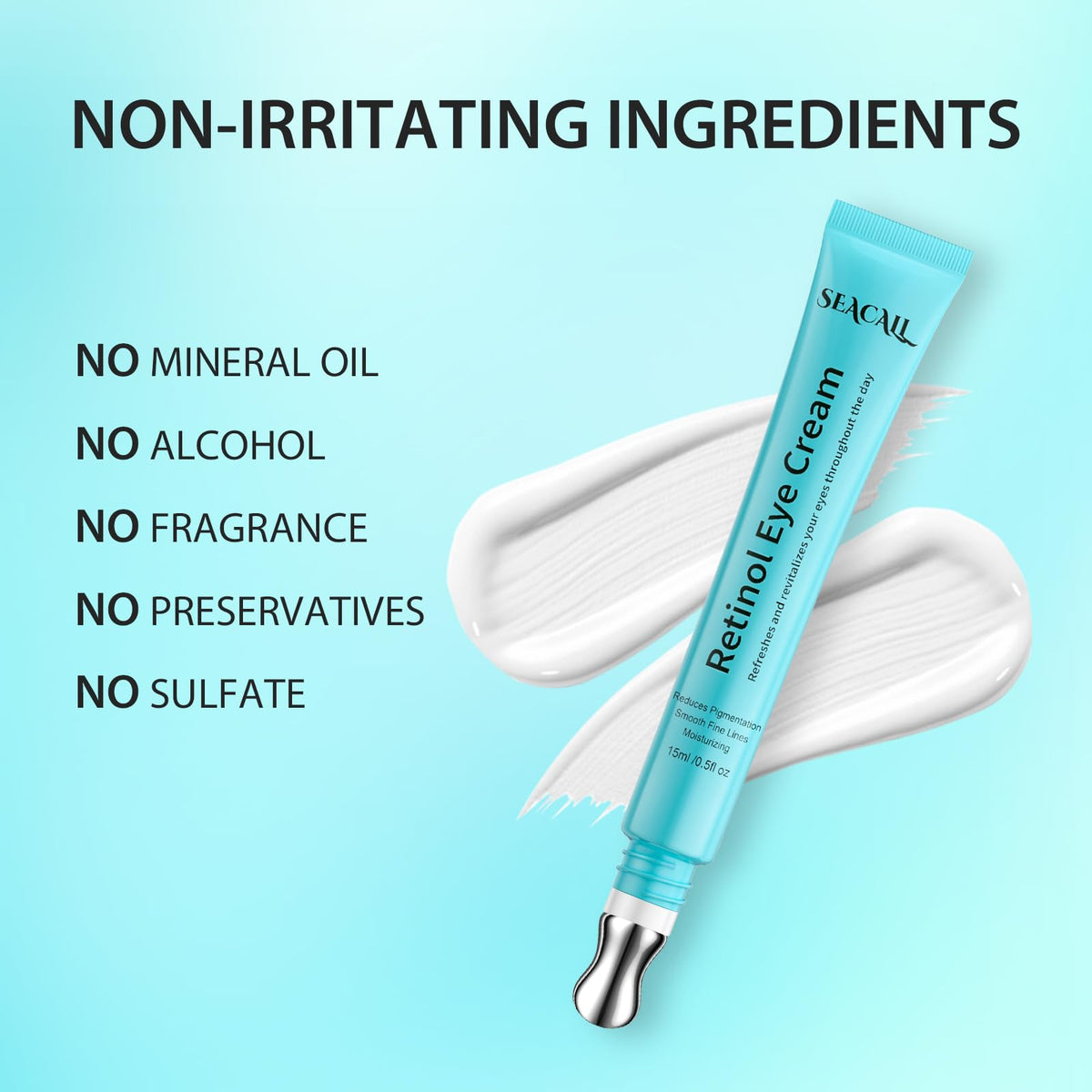 Seacall Retinol Eye Cream - Eye Cream with Hyaluronic Acid and Caffeine for Dark Circles and Puffiness, Anti-Aging - Reduces Wrinkles and Repairs the Eye Area (15ml)