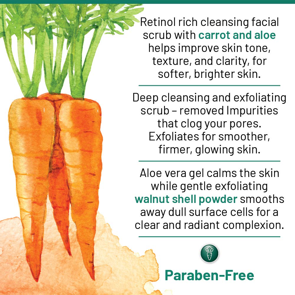 Revitalize your skin with 40 Carrots Carrot Aloe Facial Cleansing Scrub. This scrub helps improve skin tone and texture, leaving your skin softer and more radiant with each use.