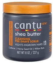 - CANTU MEN'S COLLECTION CLEANSING PRE-SHAVE SCRUB Step 1 of 3 is specifically formulated for the needs of men with wavy, curly, and coarse hair. Made with no sulfates, parabens, or mineral oils.