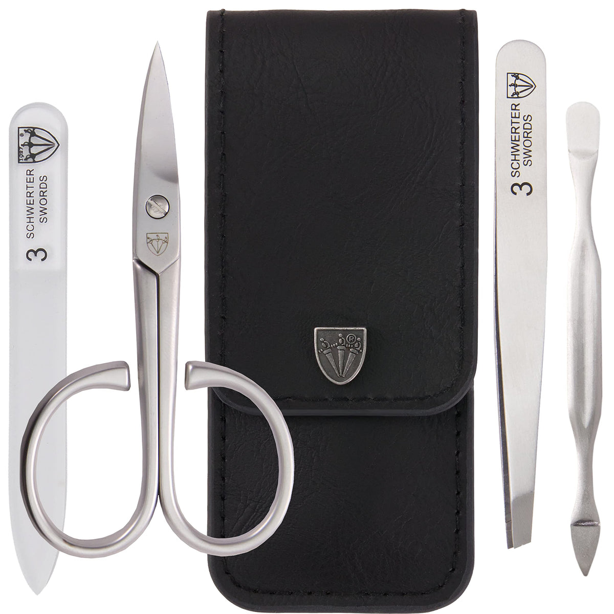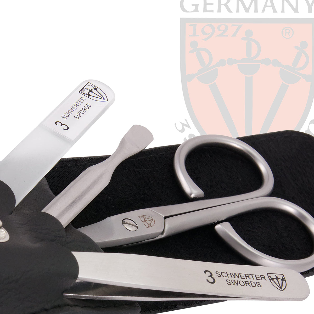 3 Swords Germany - brand quality 3 piece stainless steel INOX manicure pedicure grooming kit set for professional finger & toe nail care scissors file tweezers genuine leather case in gift box (03881)