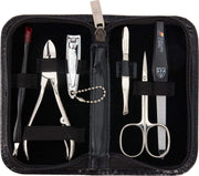 3 Swords Germany 6-Piece Manicure Pedicure Grooming Kit is a professional set for nail care enthusiasts. Made in Solingen Germany, this set includes scissors, clippers, and more in a stylish leather case, making it a perfect gift for nail care aficionados.