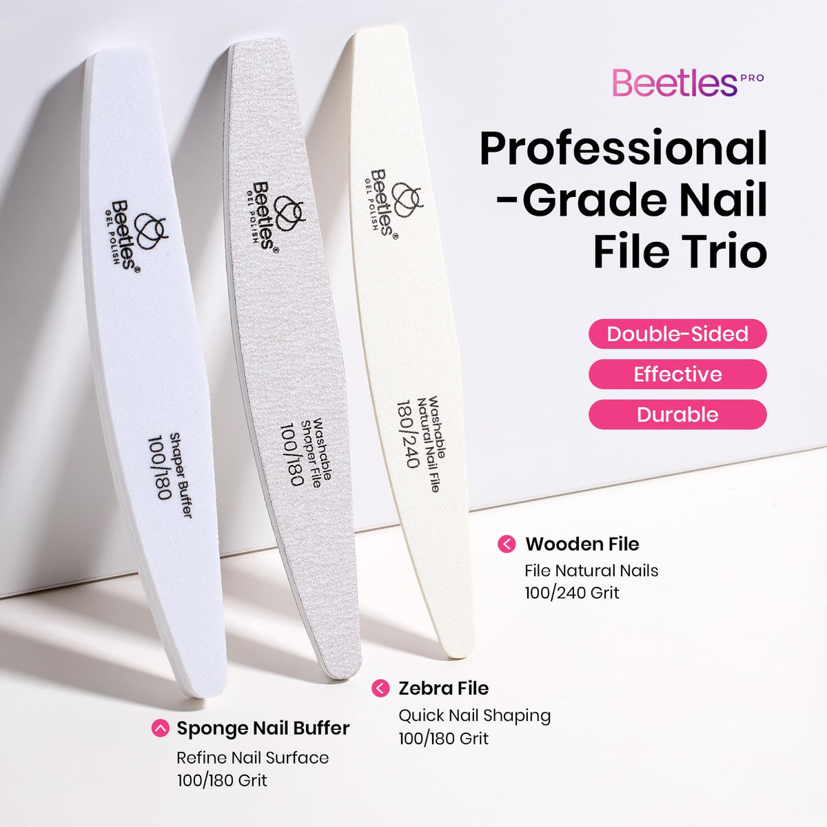 Beetles Nail File Nail Buffer, 3 Pcs Nail Files and Buffers for Acrylic and Natural Nails, 100/180/240 Grit Finger Nail Files & Buffers for Gel Nails Polish Home Salon Manicure Gift for Women
