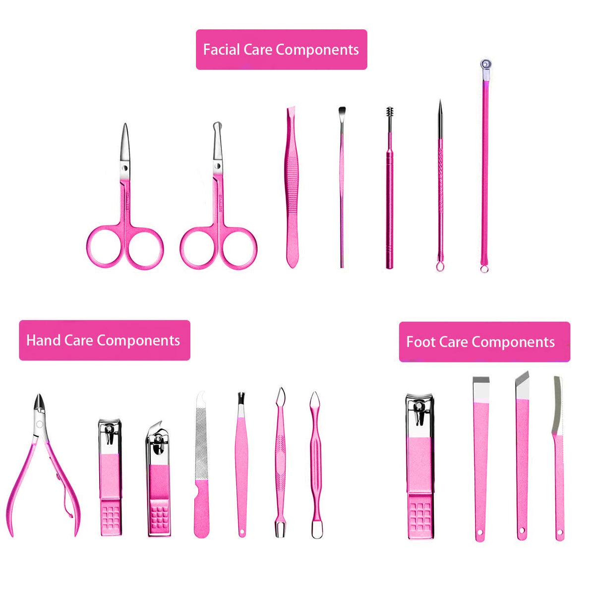 Glamne Manicure Pedicure Set Professional Nail Care Grooming Kitwith Travel Case 18pcs (Shining Rosy)