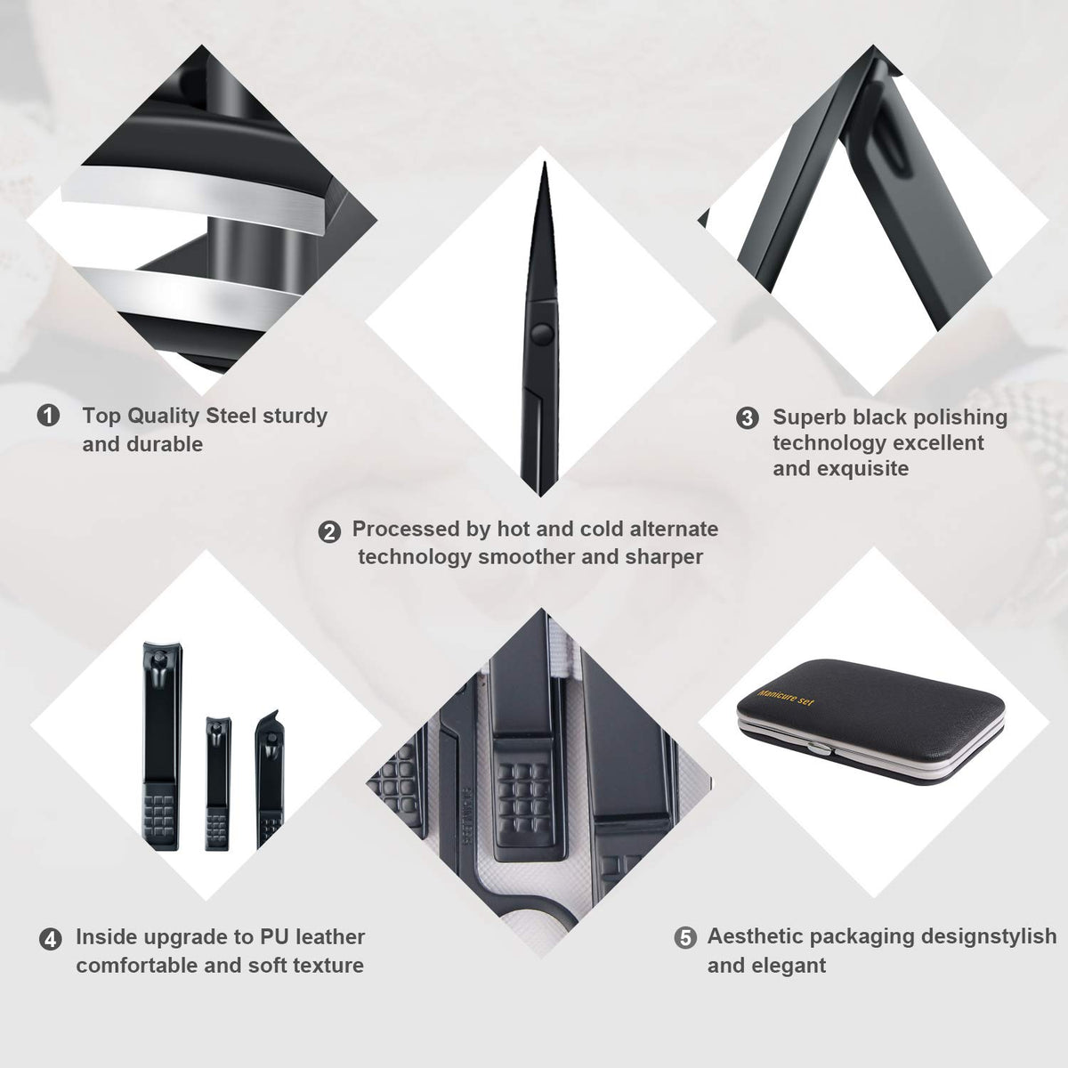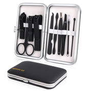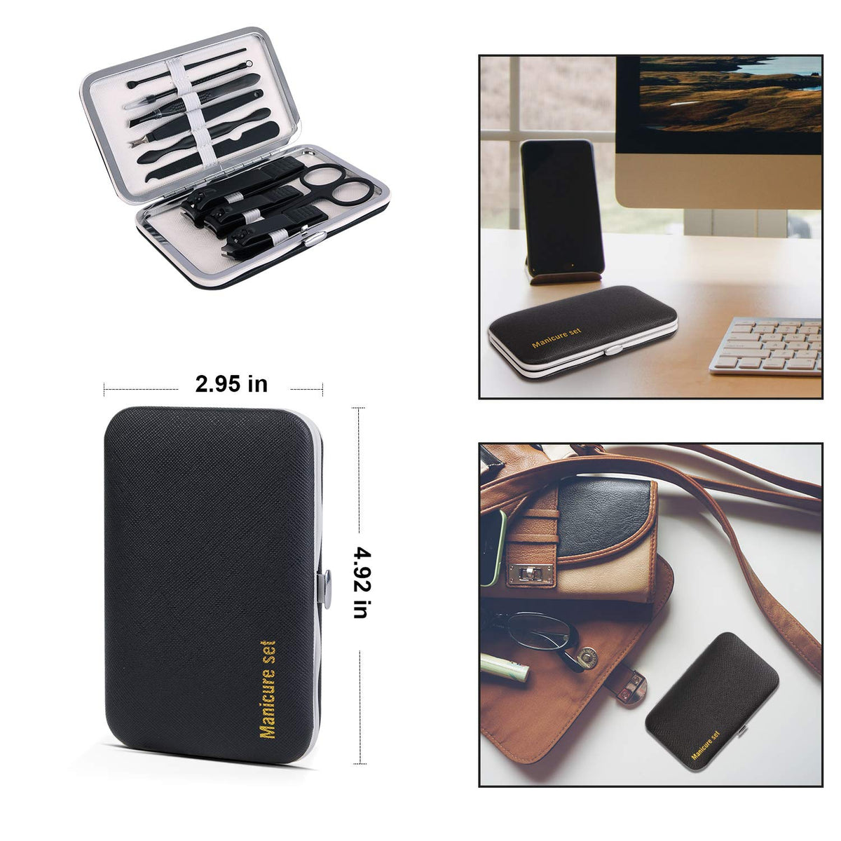Manicure Set, Travel Nail Clippers Kit Pedicure Care Tools, 10pcs Stainless Steel Grooming kit (Black)