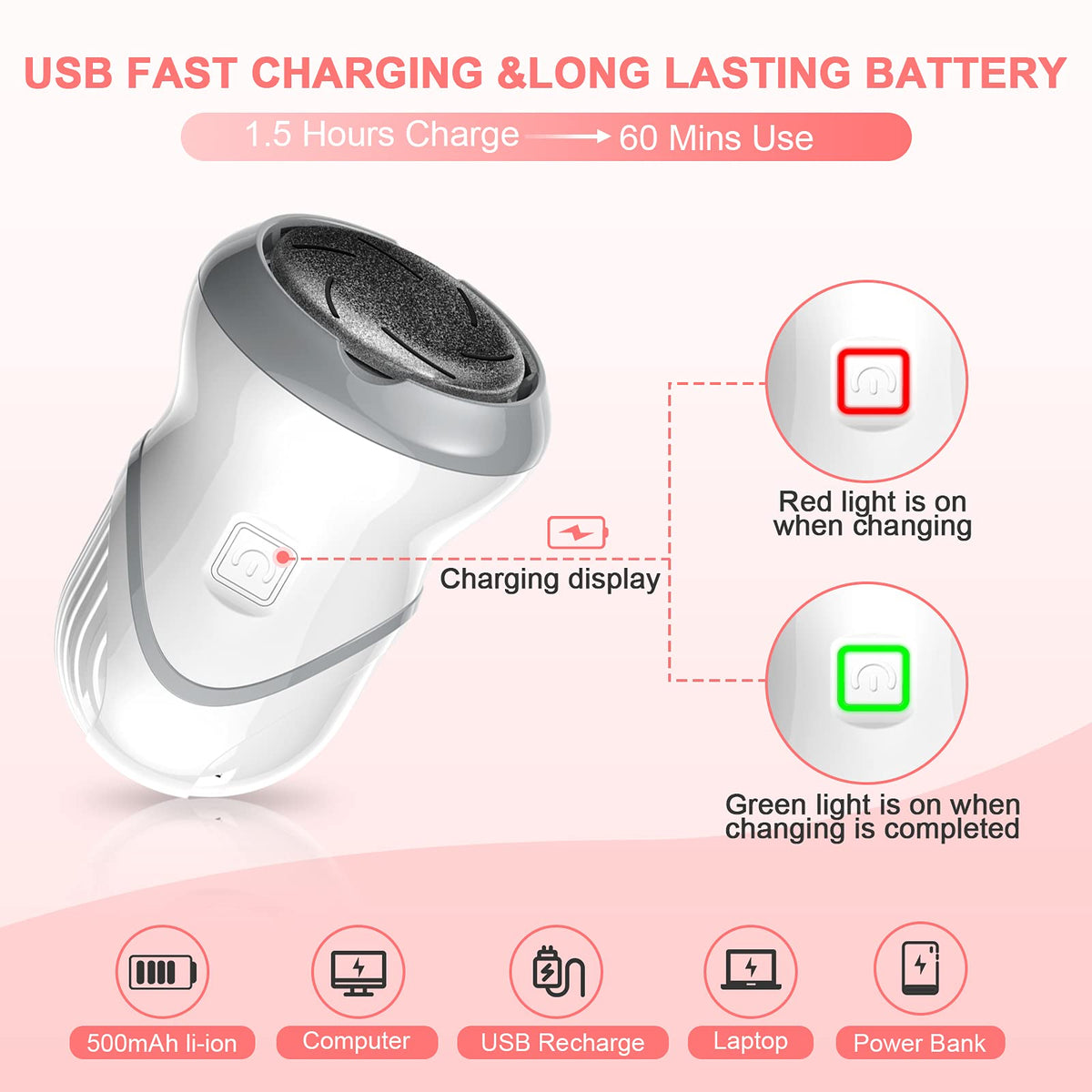 Professional electric feet callus remover,Portable Rechargeable Foot File Pedicure Tools with Vacuum Adsorption Foot Grinder 2 Speed 3 Grinding Heads, Ideal for Dead Skin/Powerful Exfoliation