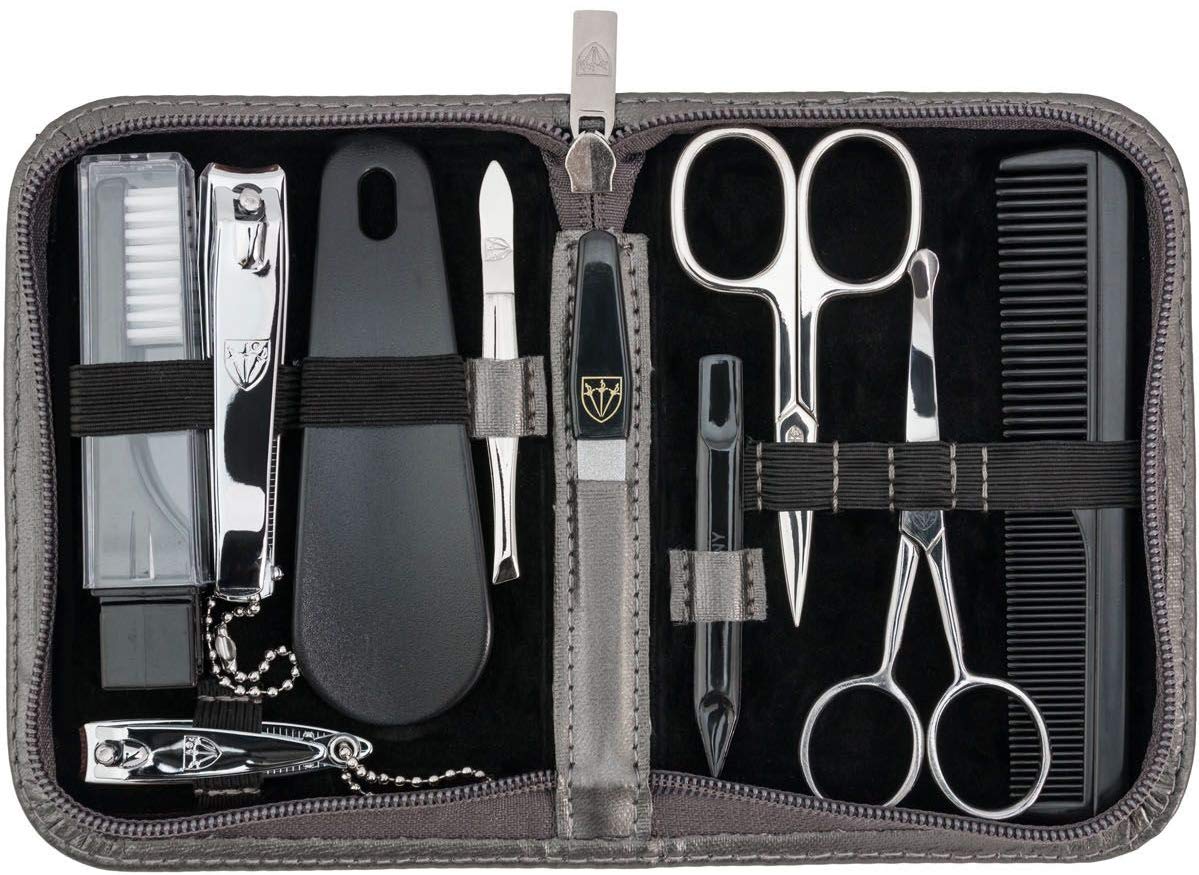 THREE SWORDS Exclusive 10-Piece Manicure-Pedicure-Grooming-Nail Care Set offers a comprehensive solution for nail care. This kit includes various tools designed for basic-standard quality grooming and maintenance.