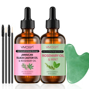 Organic Rosemary Mint & Jamaican Black Castor Oil 2 Packs with Gua Sha Tool, for Hair Growth & Body Massage Kit, 100% Pure, Natural, Cold Pressed Hair Oils, Womens Gift