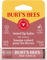 Burt's Bees Tinted Lip Balm in Red Dahlia shade offers a subtle tint for a natural look. This blister pack ensures easy application and a touch of color that enhances your lips with a hint of red.