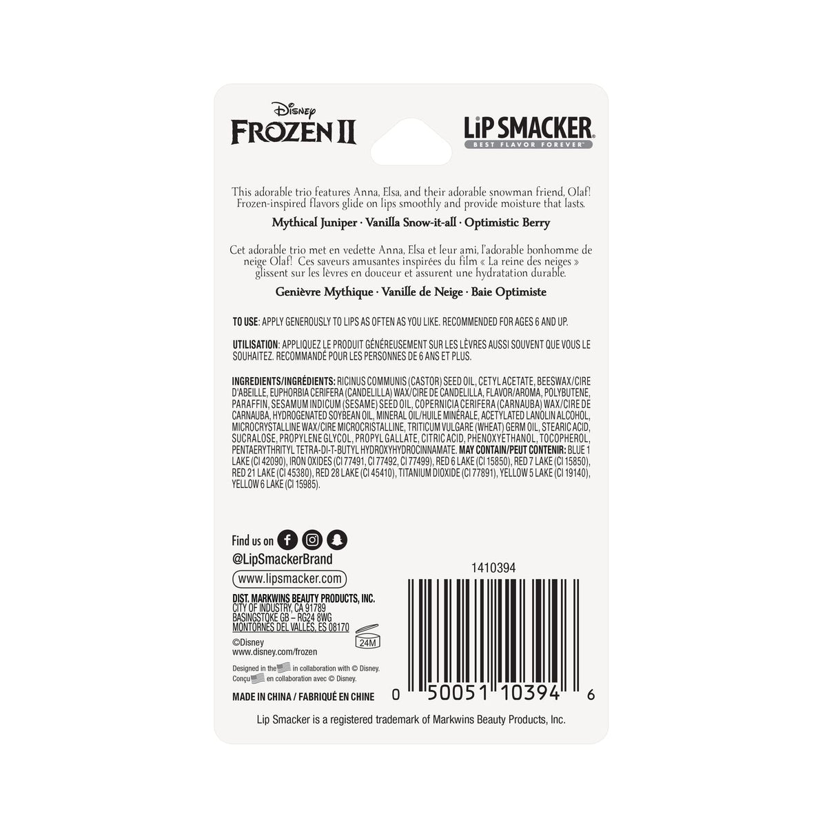 Lip Smackers Disney Frozen 2 Flavored Lip Balm Trio offers moisturizing and soothing lip care in three delightful flavors: Mythical Juniper, Vanilla Snow-it-all, and Optimistic Berry. Keep your lips soft and hydrated with this fun lip balm set.