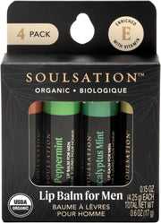 Soulsation Organic Lip Balm Set for Men - 4 Flavors - 100% Natural Moisturizing for Cracked & Dry Lips