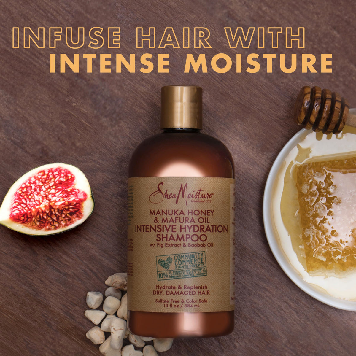 SheaMoisture Intensive Hydration Shampoo for Dry, Damaged Hair Manuka Honey and Mafura Oil Sulfate-Free 13 oz