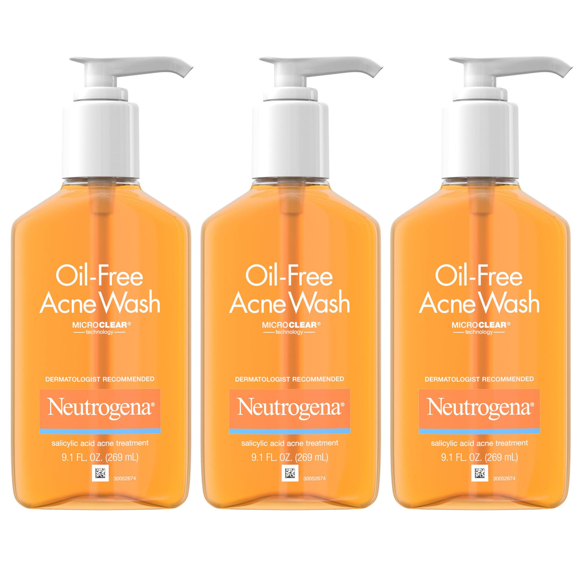 Neutrogena Oil-Free Acne Fighting Facial Cleanser with Salicylic Acid Acne Treatment Medicine, Daily Oil-Free Acne Face Wash for Acne-Prone Skin, 9.1 fl. Oz, 3 Pack