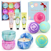 Bath Bombs for Women Gift Set - 4 Large Bath Bombs + 3 Scented Candles + 3 Hand Lotions, Handmade Moisturizing SPA Gift Baskets Fizzy Bath Bomb, Ideal Gift for Valentine's Day, Mother's Day, Birthday