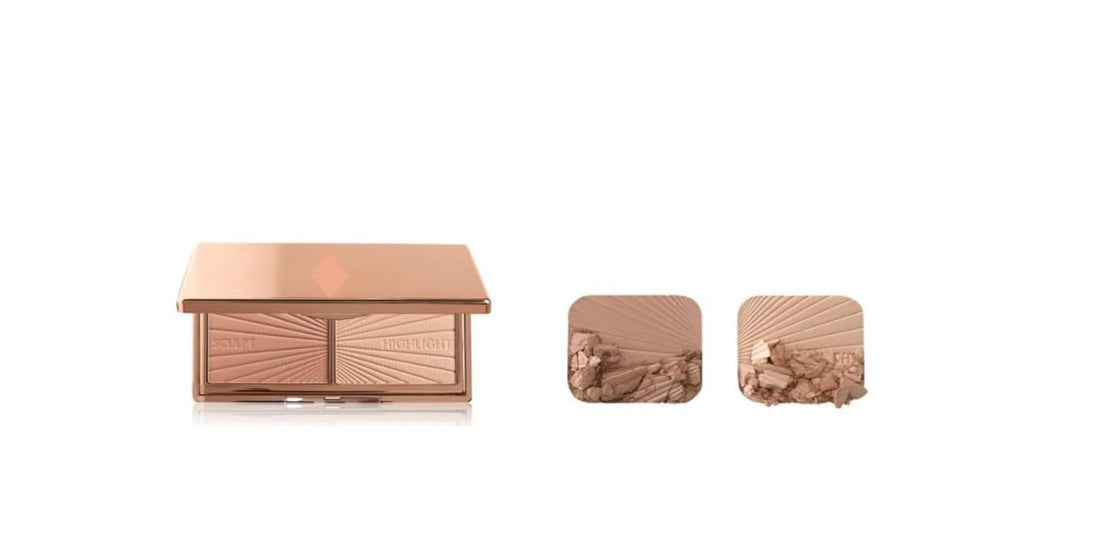 Illuminate your complexion with CHARLOTTE'S MINI FILMSTAR BRONZE AND GLOW LIGHT TO MEDIUM. This bronzer and highlighter duo adds a touch of radiance to your skin, giving you a luminous and sculpted look.
