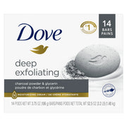 Dove Beauty Bar Soap Deep Exfoliating Charcoal Powder & Glycerin 14 count,for Softer, Smoother Skin,Scrubs Away Impurities 3.75oz
