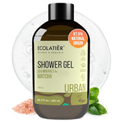 ECOLATIÈR Sea Minerals & Matcha Body Wash - Natural Body Wash for Women & Men, 97.5% Natural Ingredients, Detoxifying & Hydrating Cleanser for Sensitive Skin, Gentle & Nourishing Care, 20.3 Fl Oz