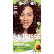 - Nutrisse shade 415 Soft Mahogany Brown (Raspberry Truffle) permanent hair color adds mahogany tones to your traditional dark brown results that nourishes while it colors and adapts to all hair textures for radiant, long lasting, even color and 100% gray coverage