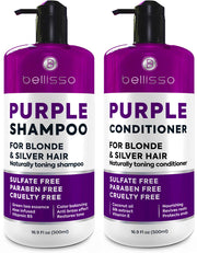 - SULFATE FREE: Bellisso’s blonde shampoo and conditioner set is completely free from harsh sulfates that can strip your hair from moisture; Better still this purple shampoo and conditioner for blonde hair is never tested on animals and contains no parabens; Make the switch to a silver hair shampoo and conditioner that’s gentle on your scalp and kind to the earth