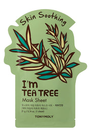 TONYMOLY I'm Real Tea Tree Skin Calming Mask Sheet soothes and hydrates the skin, leaving it refreshed and revitalized.