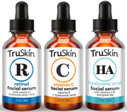 Transform your skincare routine with the TruSkin Face Serum Trio. This anti-aging skincare set includes Hyaluronic Acid, Vitamin C, and Retinol serums to brighten, hydrate, and firm your skin, leaving it looking smooth, radiant, and youthful.