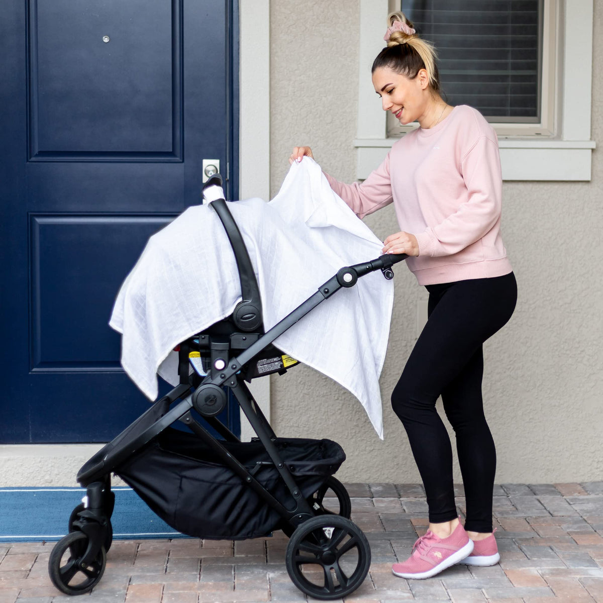 The 100% Organic Cotton Muslin Car Seat Cover is a lightweight and breathable canopy for infant car seats. It provides protection from sunlight and dust, ensuring a safe and comfortable ride for your baby.