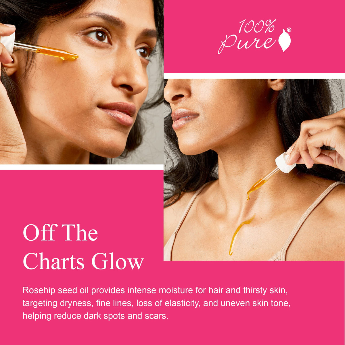 Transform your skincare routine with 100% PURE Organic Rosehip Oil Moisturizer. Packed with hydrating vitamins and omega fatty acids, this natural cold-pressed oil promotes youthful, glowing skin from head to toe.