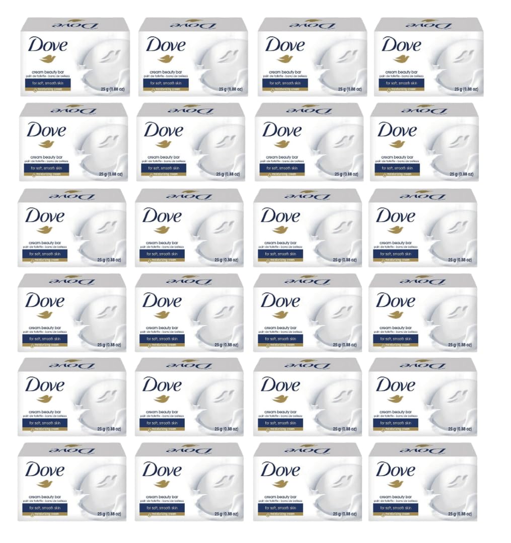 The Safe Essentials Dove Cream Beauty Bar Soap Pack offers 12 travel-size bars, each weighing 25 grams. Ideal for on-the-go use, these bars provide gentle cleansing and nourishment for your skin.