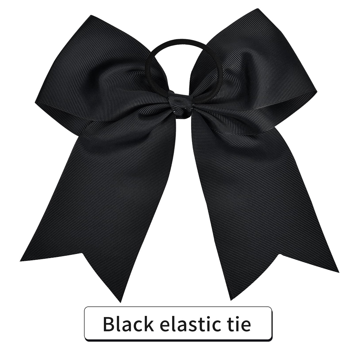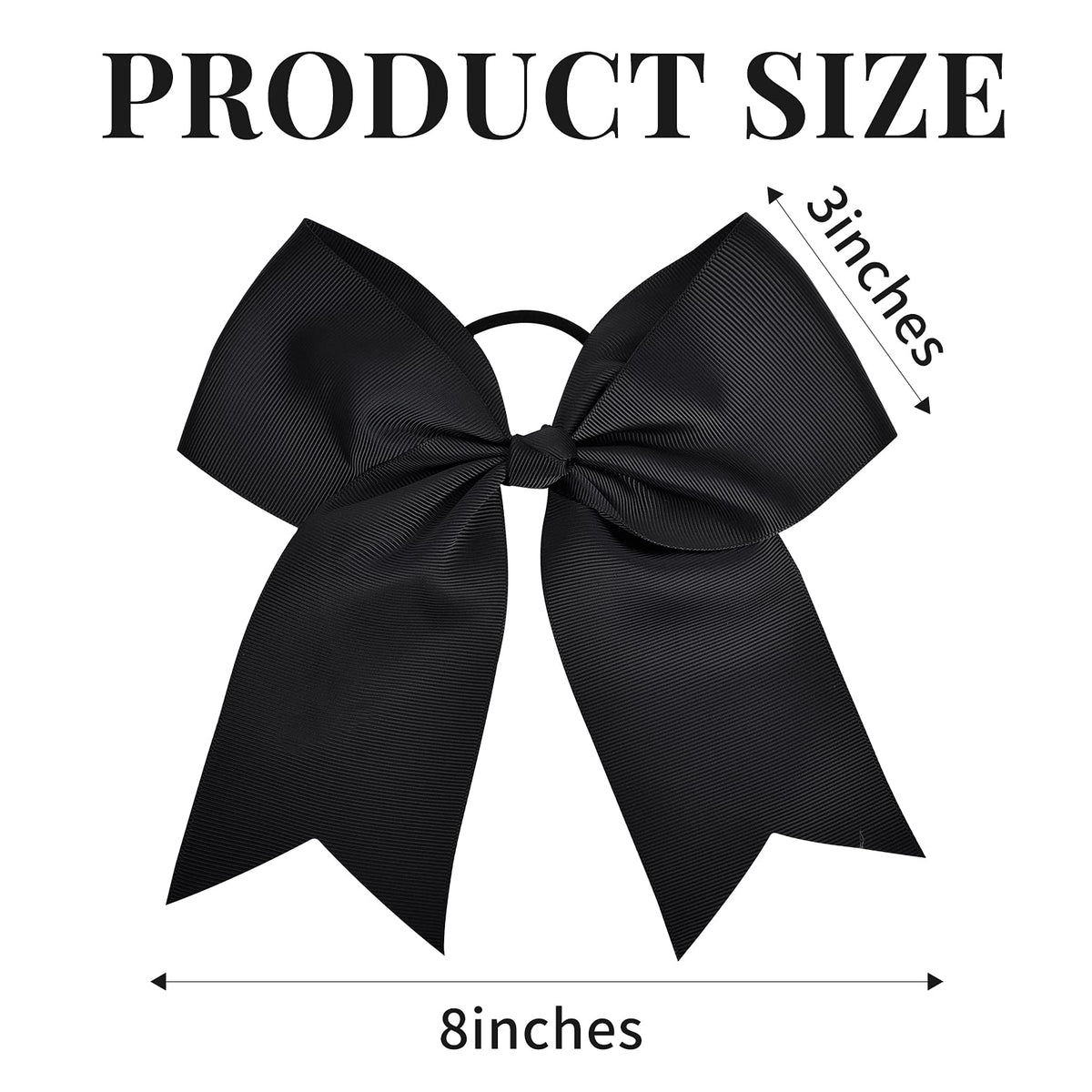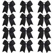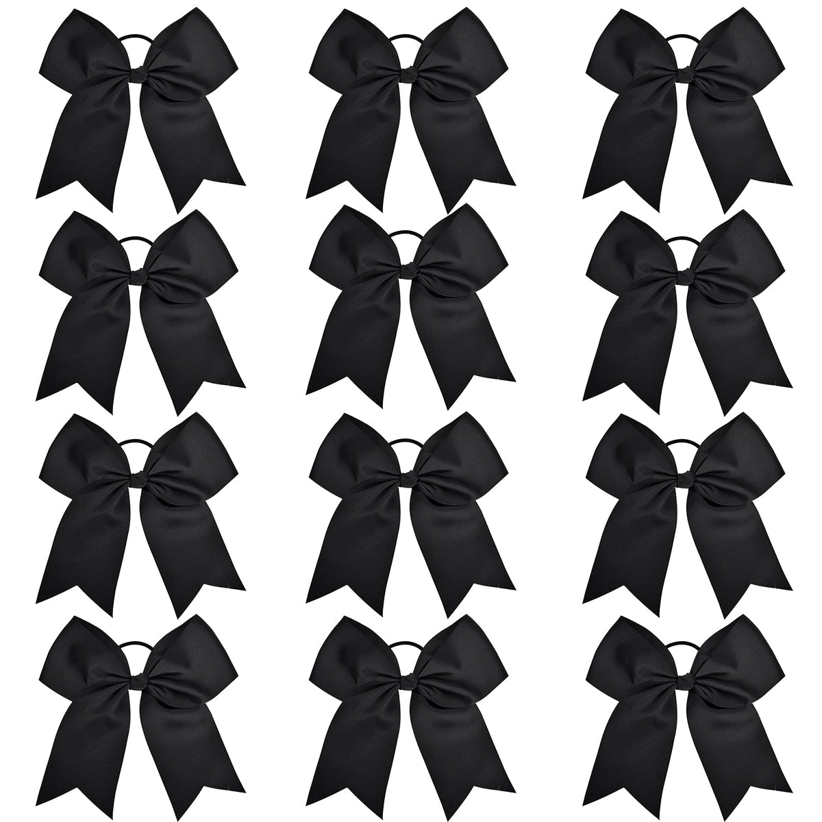 Aileam 12-Black: 12 Pcs Large Cheer Bows 8 Bulk Hair Bow Accessories With Ponytail Holder For Girls High School College Cheerleading