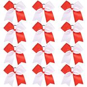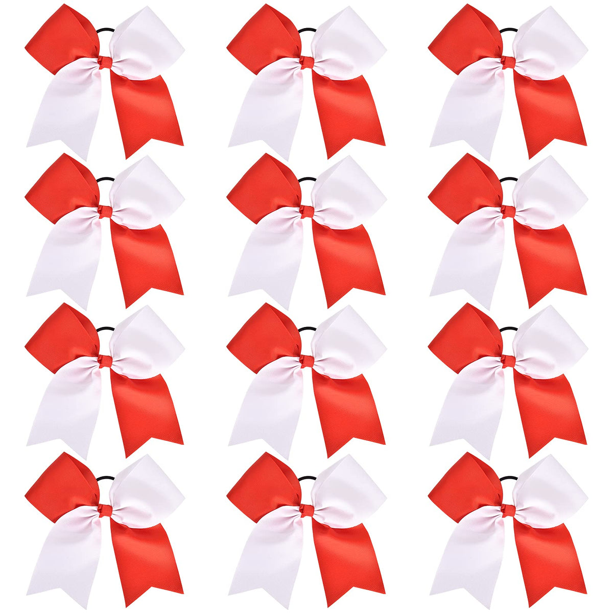 Aileam Red/White(12Pcs) : 12 Pcs Large Cheer Bows 8 Bulk Hair Bow Accessories With Ponytail Holder For Girls High School College Cheerleading