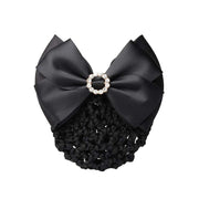 1Pcs Black Rhinestone Satin Bow Barrette Bowknot Snood Net Barrette Hair Clip Bun Cover Hairnet Bowknot Decor French Hair Clip Women ladies Girls Hair Accessories