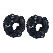 2 Pack Black Satin Face Sequins Hair Scrunchies are the perfect accessory for adding a touch of sparkle to your hair. These sparkly hair ties are versatile and stylish, suitable for various occasions like school, dance, or everyday wear. Elevate your hairstyle with these trendy and comfortable scrunchies.