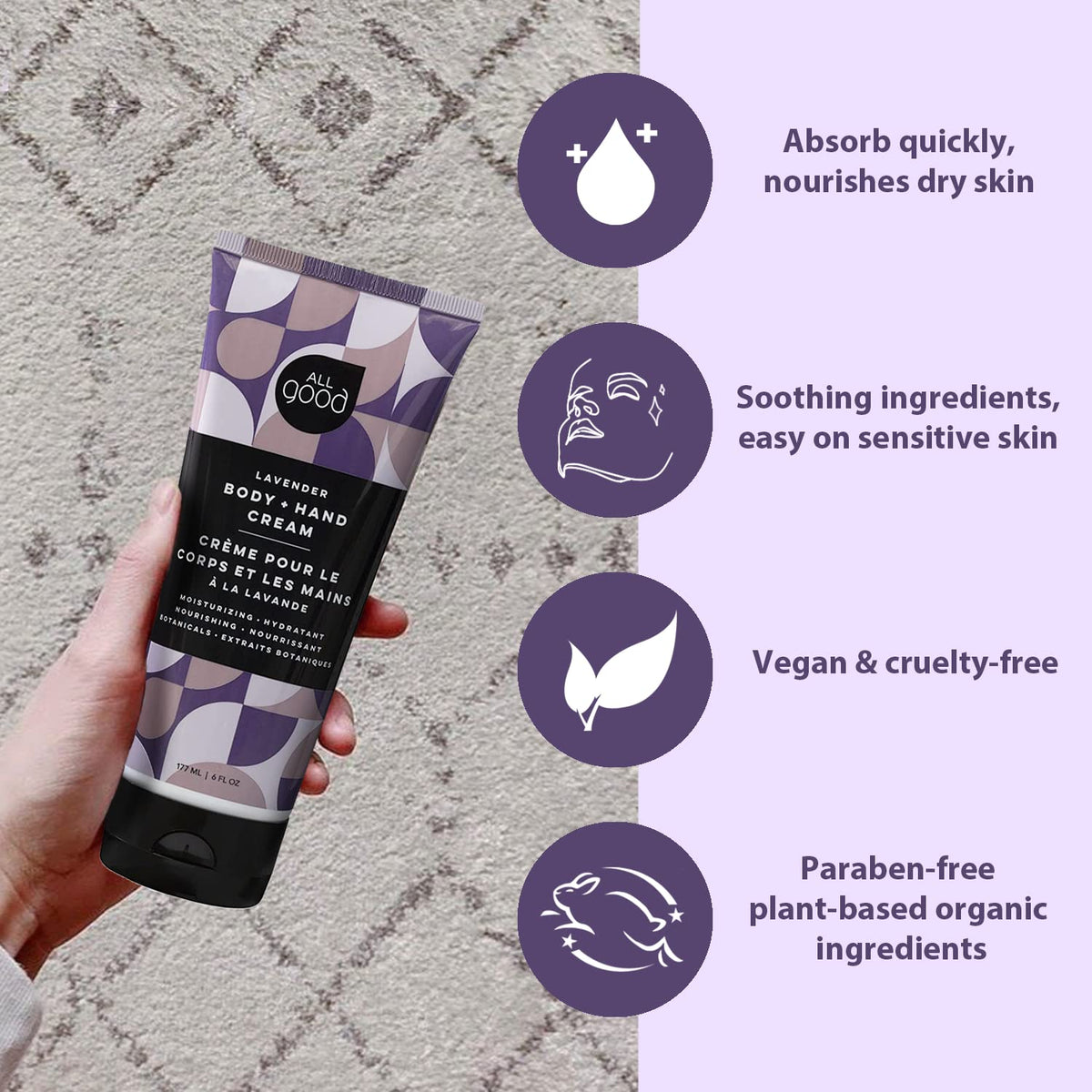 Indulge in the luxurious All Good Body Lotion with Essential Oils in Lavender. This moisturizing organic lotion is enriched with calendula, cocoa butter, coconut, and rose hip oil, offering a non-GMO and vegan formula that pampers your skin with natural goodness.