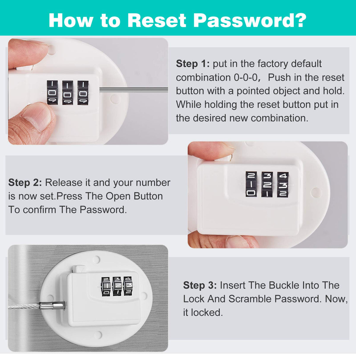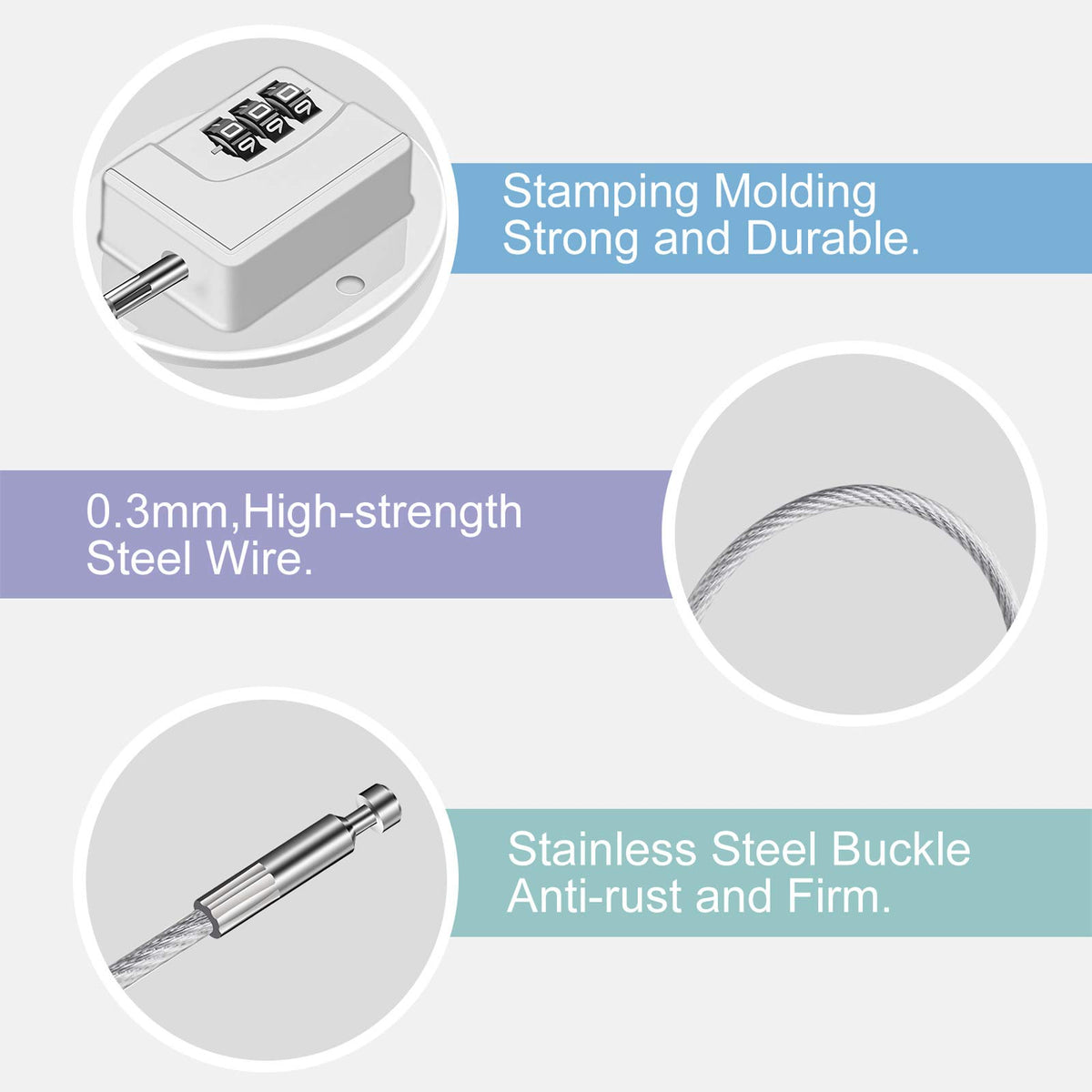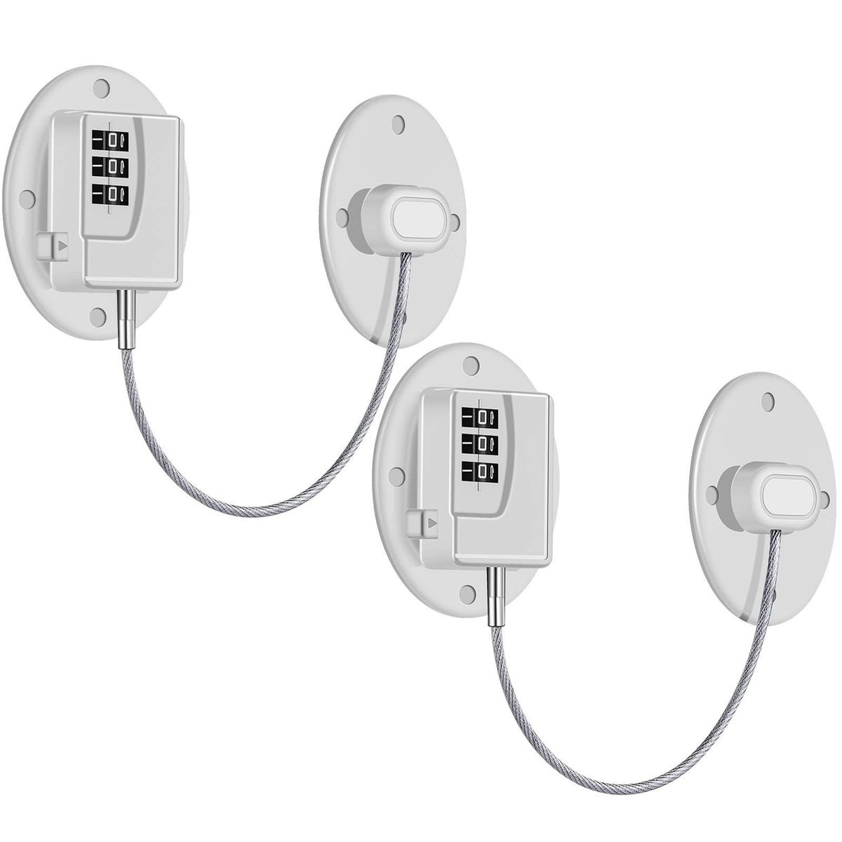 2 Pack Refrigerator Lock - Heavy Duty 3 Digit Cable Fridge Lock, Child Proof Cabinet Locks(White)