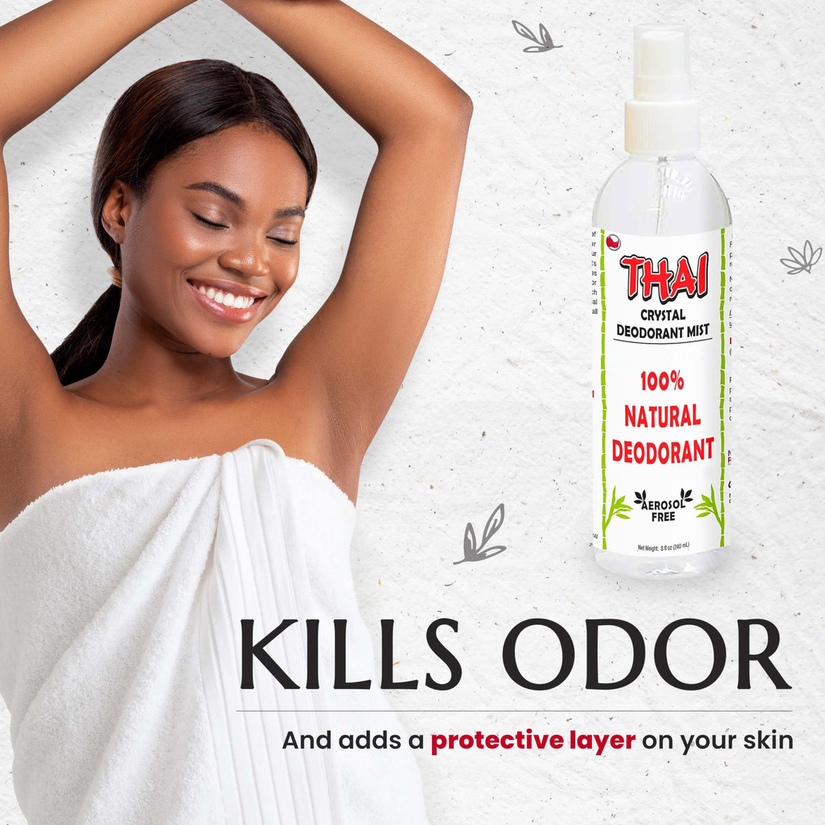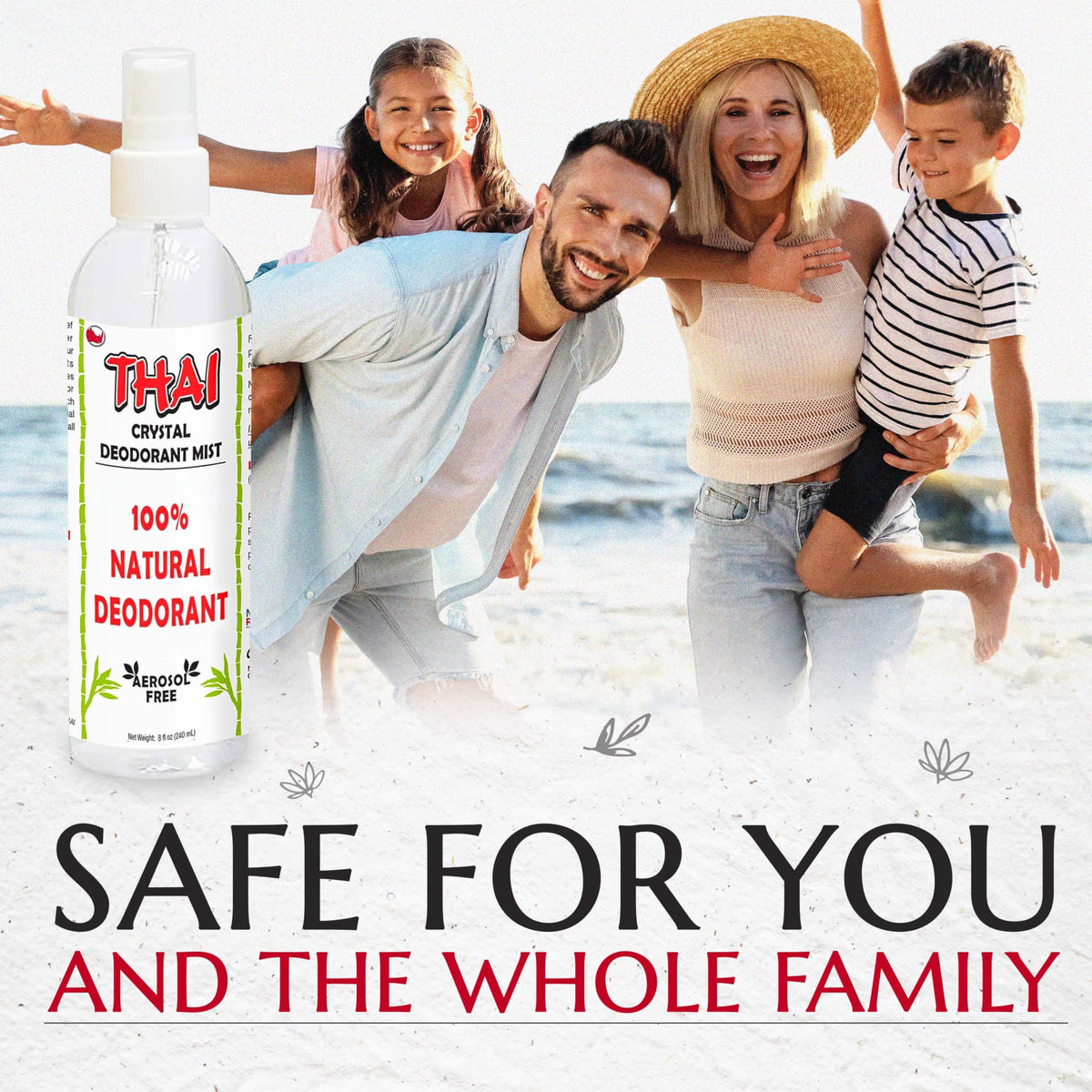 Thai Deodorant Crystal Mist Spray is a natural and effective deodorant option for whole-body use. This crystal salt spray provides long-lasting odor protection for women, men, and teens without any harsh chemicals.