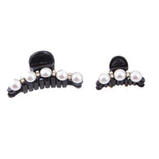 2 Pcs Man-Made Pearl Women Lady Girls Hair Black Clip Pin Claw Barrettes Accessories (1 Big + 1 Small)