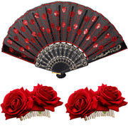 - Package content: there are 2 pieces rose flower hair clips and 1 piece embroidered sequins fabric folding fan in one package, all come in red colors that can bring cheerful touch to your activities, make your party or festive decoration eye-catching