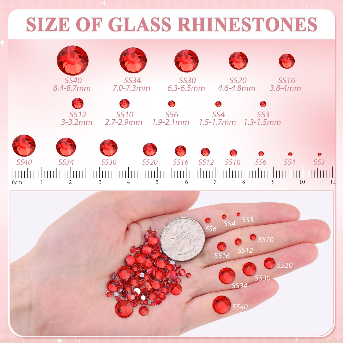 Elevate your crafting projects with 2000PCS SS16/4mm Glass Crystal Rhinestones in Light Red/Light Siam shades. These flatback red rhinestones are perfect for bedazzling DIY crafts, nail art, makeup, and more, adding a touch of glamour to your creations.