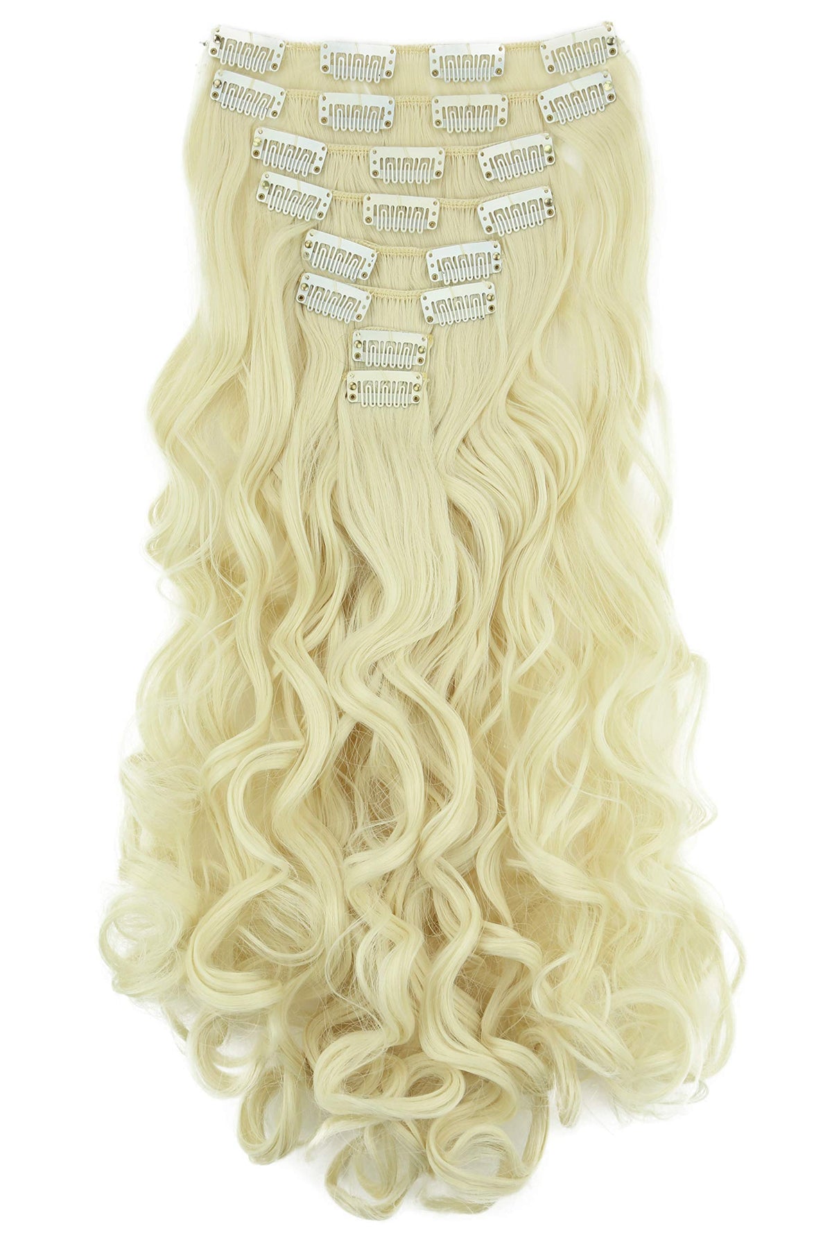 24 (60cm) white blonde #88 CES8-1 : PRETTYSHOP XXL Set 8 pcs 24 Clip In Hair Extensions Full Head Hairpiece Wavy Curled Or Straight Heat-Resisting Div. Colors (light bleach blonde curled #88 CES8-1)