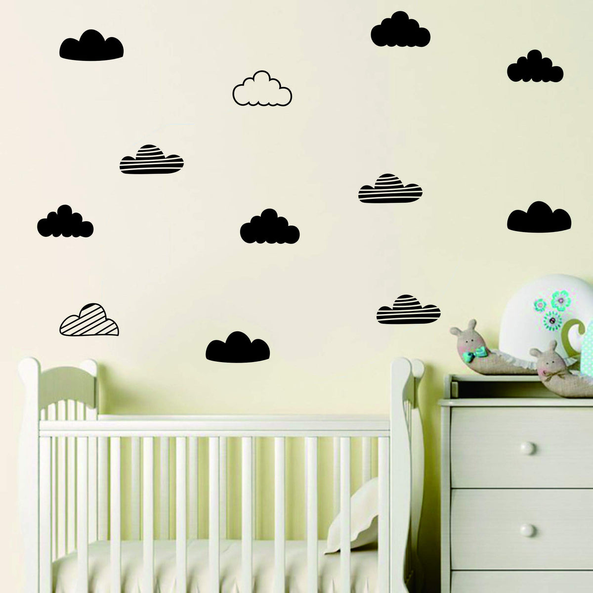 24 Pcs/Set Clouds Decal Vinyl Wall Sticker for Kids Room Nursery Decoration Boy Girl Child Bedroom Living Room Art Decor Home House Design Mural YMX57 (Black)