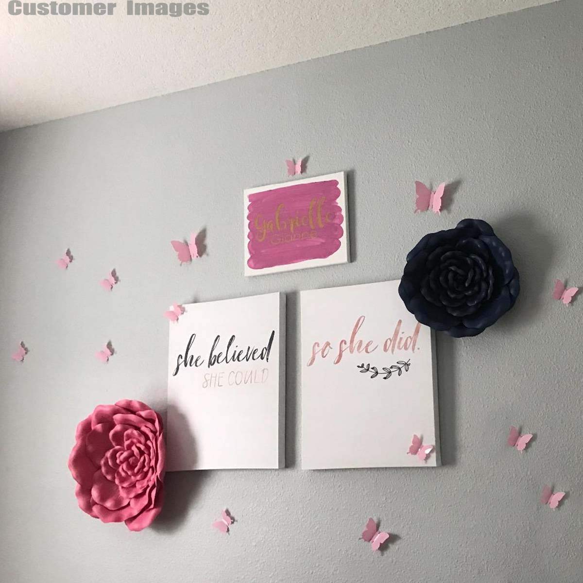 24pcs 3D Butterfly Removable Mural Stickers Wall Stickers Decal for Home and Room Decoration (Pink-24pcs)